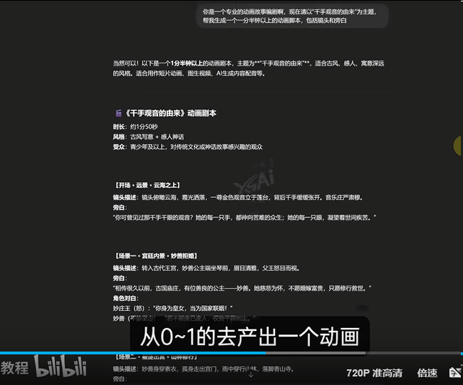 剧本:通过AI来生成,例如一个2分钟的视频,ai可能会给出10个场景。