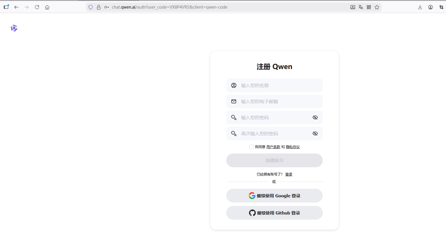 https://chat.qwen.ai/auth?user_code=VX8P4VRS&client=qwen-code