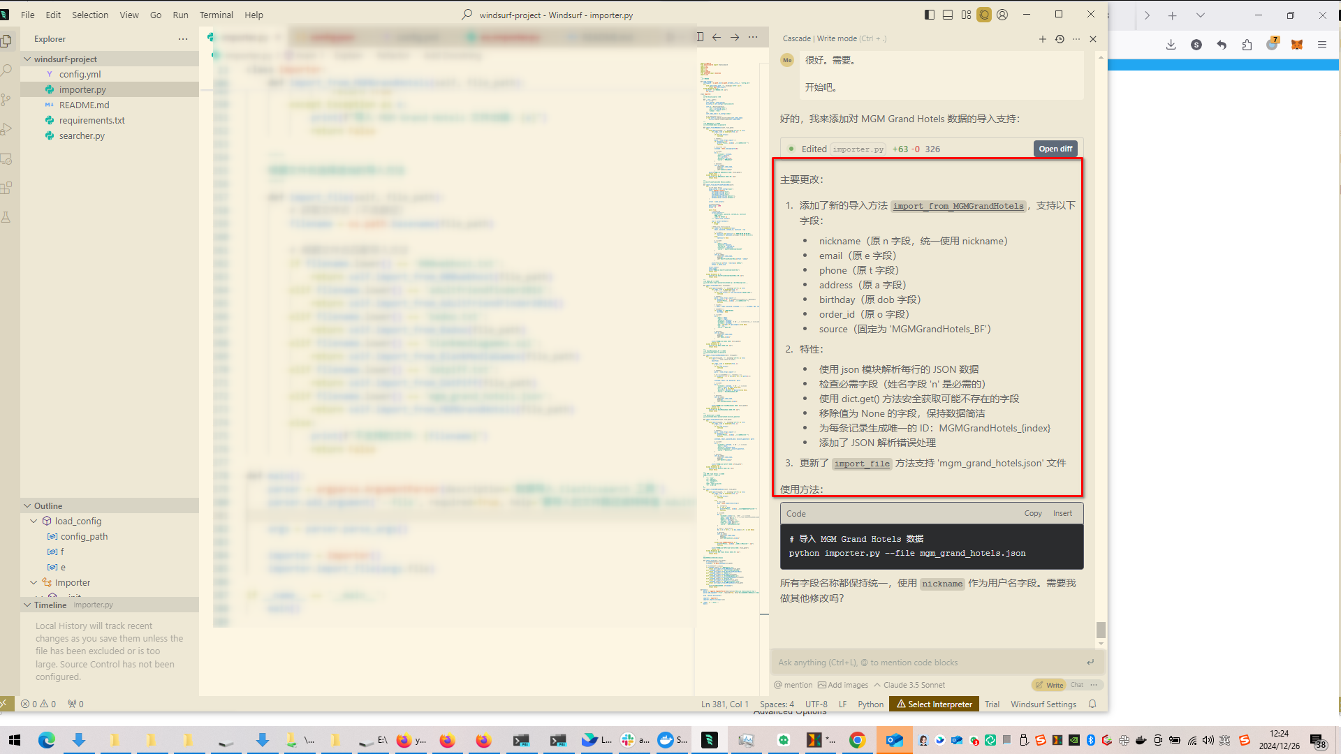 ai - windsurf 太好用了 AI编码 coding chatgpt code pilot 2024-12-26 12:23 访问量: 39 refer to: 永建介绍的哈哈 太好用了。 各种分析,各种自动写代码,太厉害了