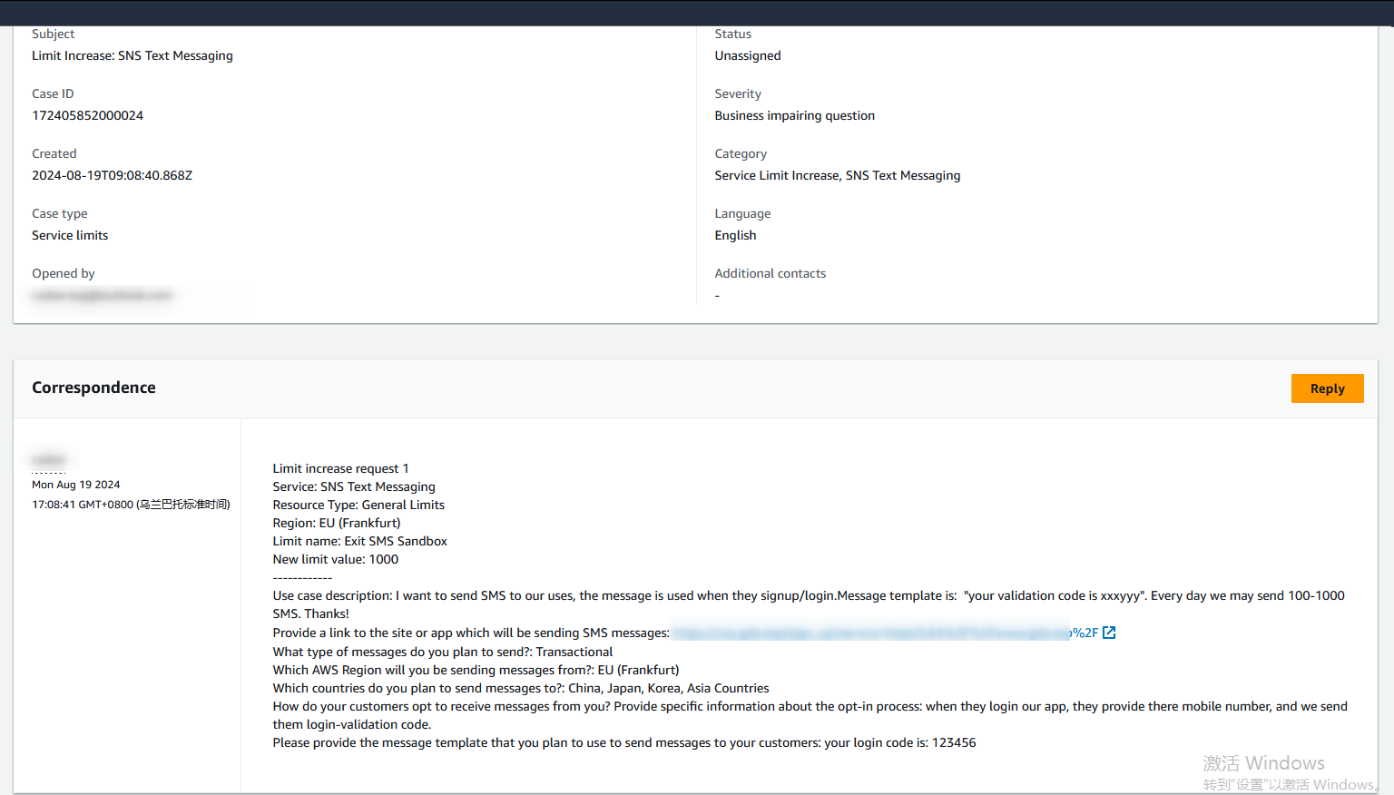 经过在sms中找到的入口是提交一个ticket, 答复说,需要我们再sns中再找一个入口,提交才行: