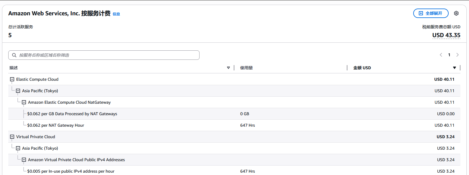 很多人用完 AWS 后只删了 EC2 实例,却忘了清理NAT Gateway 和弹性 IP,结果它们在后台默默按小时计费,这是 AWS 最常见的 “隐形账单”。