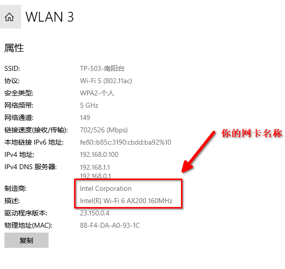 1. 找到windows的硬件网卡: