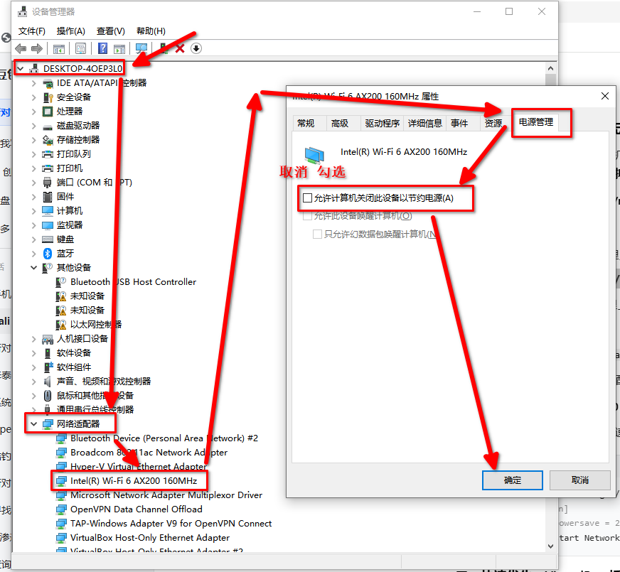 2. 设备管理器,找到该硬件,右键,对于 电源管理的 “允许”。。。取消勾选:
