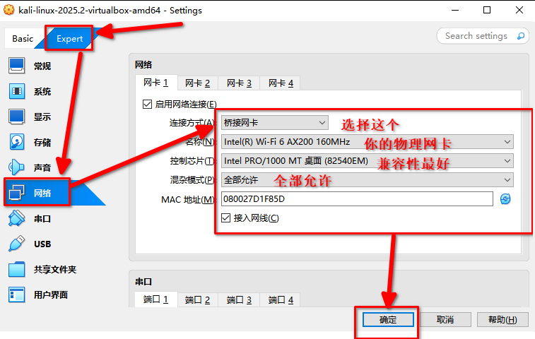 验证该 kali linux 的网卡: