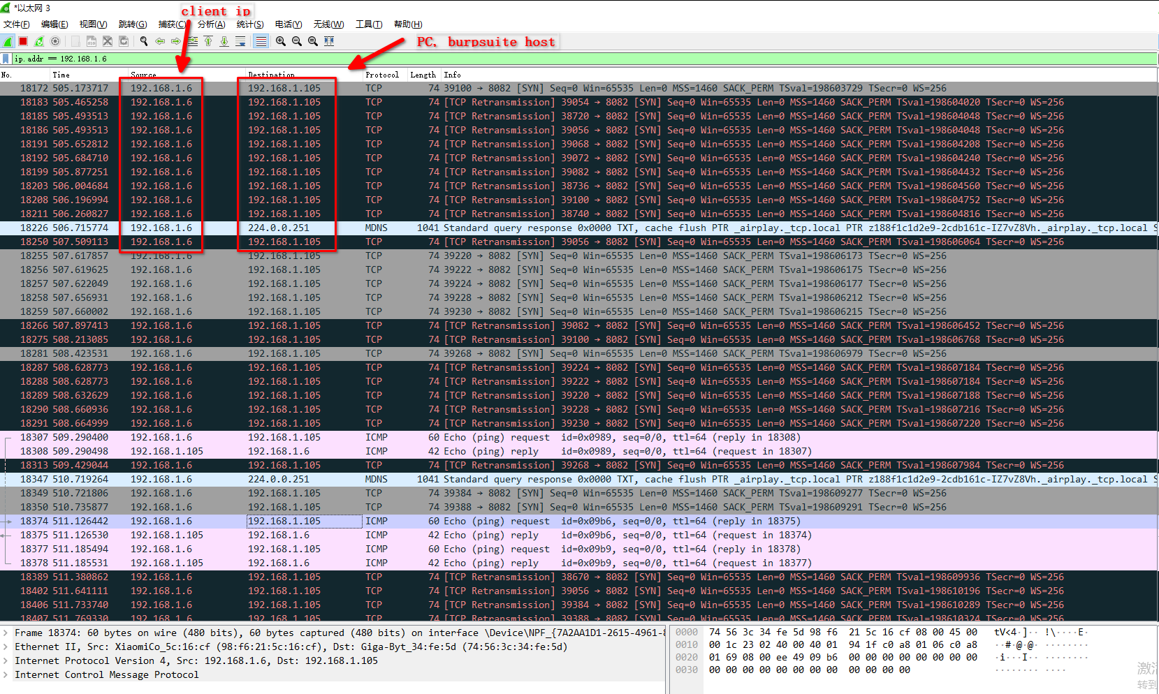 5. wireshark 中倒是可以看到mobile与PC端的网络通信。